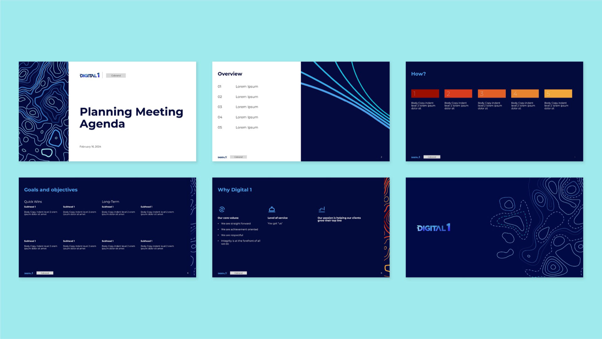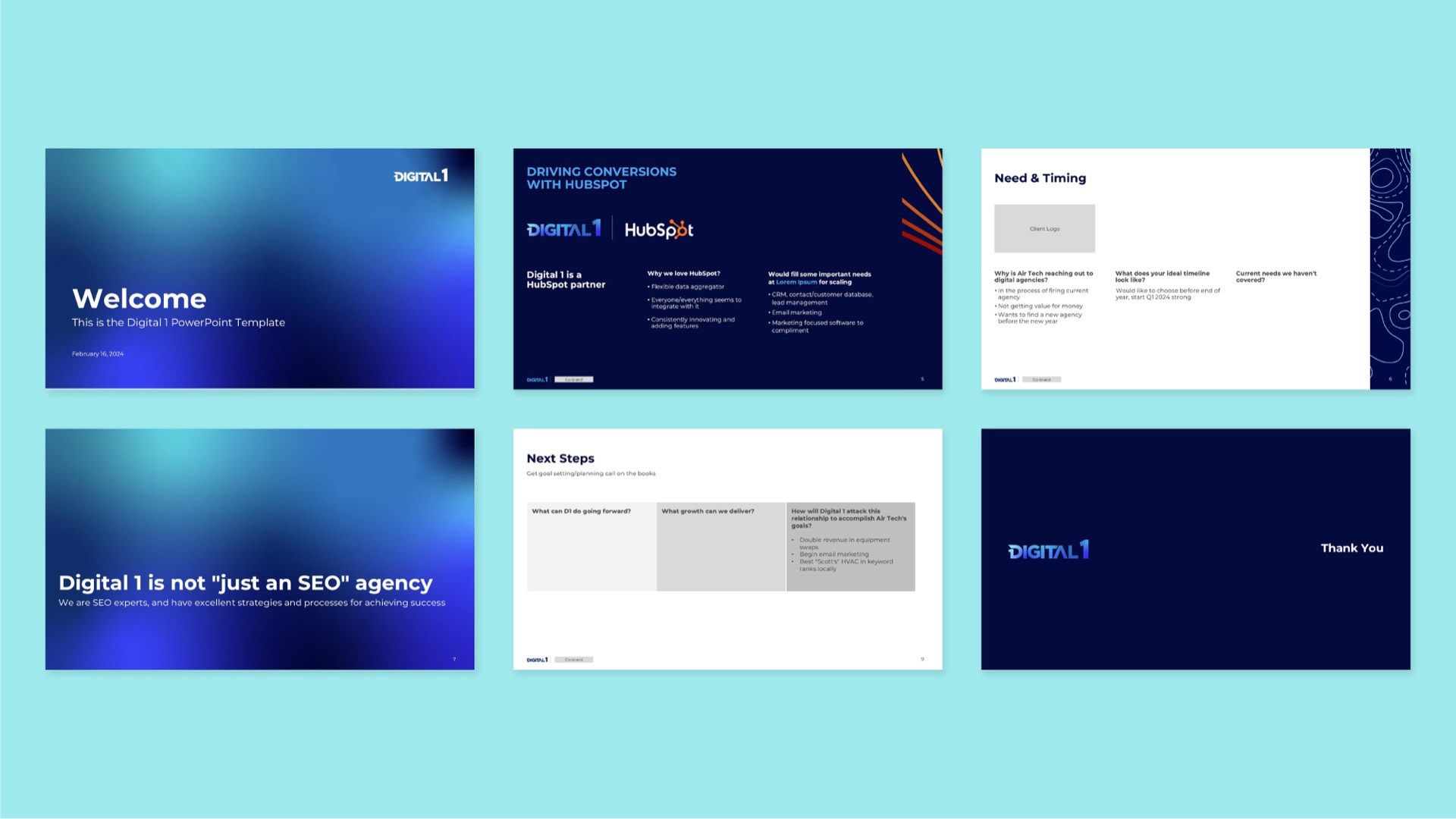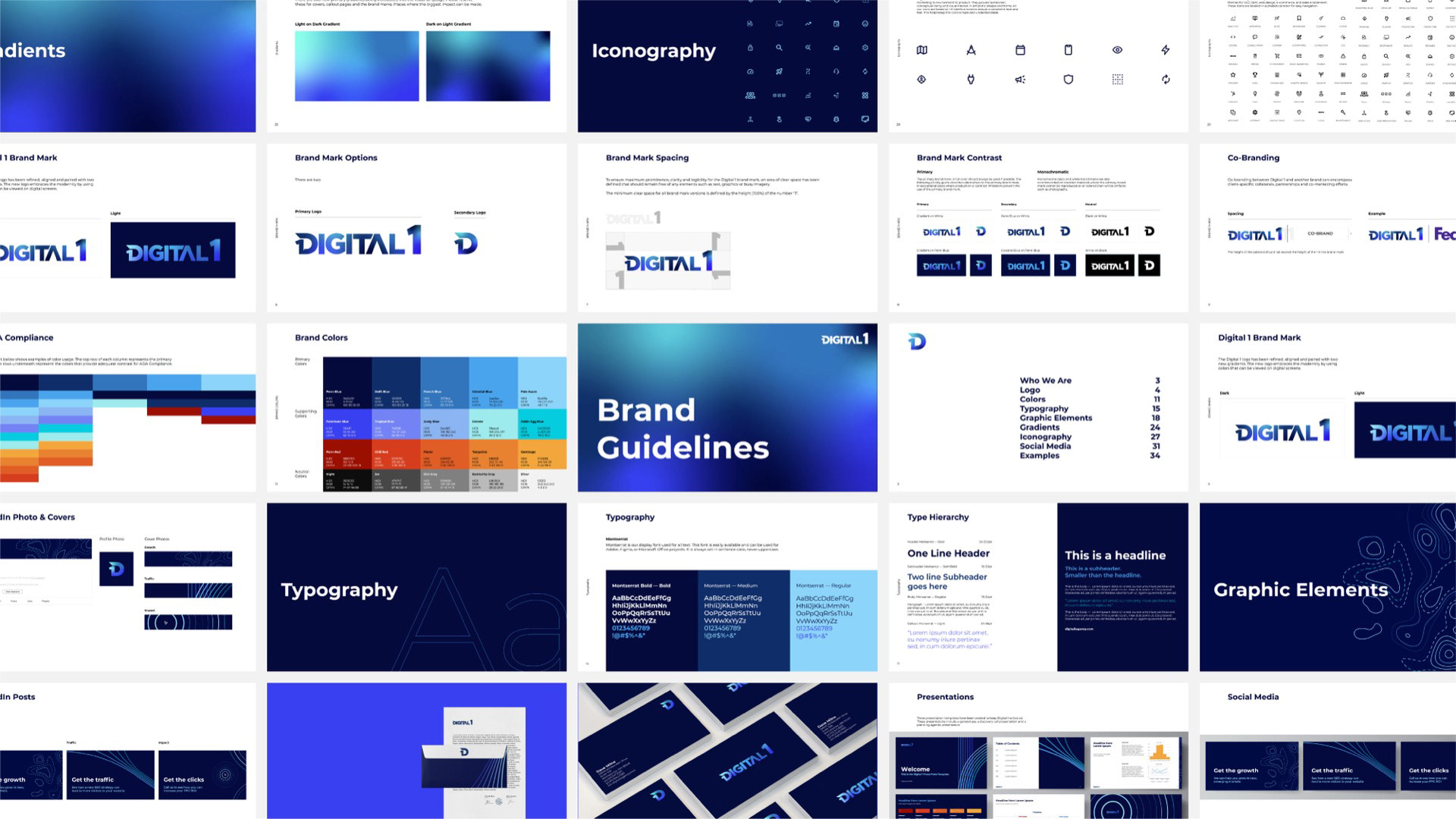 The rebrand repositioned Digital 1 with a clearer, more confident presence in the market. By evolving the logo, modernizing the color system, and introducing a cohesive set of graphic elements and icons, the brand gained the structure it needed to communicate consistently across digital touchpoints. What began as a presentation redesign ultimately became a scalable identity system — strengthening brand perception, improving clarity of services, and equipping the team with tools to grow with authority and cohesion.
